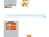 1. 在舞臺上隨意地導入 4 個不同的角色,代表 4 個不同的商品。之后對商品進行 簡單的排布(如 2 行 2 列的布局)。在舞臺右下腳導入一個人物類的角色,代表收銀 員。注意:5 個角色之間互不遮擋。再建立總價變量(變量名可隨意輸入),并使用 “大屏幕顯示”,放臵在收銀員的上方。再為程序設臵漂亮的背景圖片。