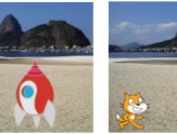 準(zhǔn)備工作: 背景選擇“Beach Rio”,導(dǎo)入角色庫中火箭角色“Rocketship”。 編程實(shí)現(xiàn): 1、當(dāng)綠旗被點(diǎn)擊后,小貓和火箭出現(xiàn)在如圖 1 位臵(大致位臵即可)。注意:此 時(shí)火箭造型為 spaceship-a。 2、小貓說“發(fā)射火箭”2 秒后,火箭切換造型為 spa
